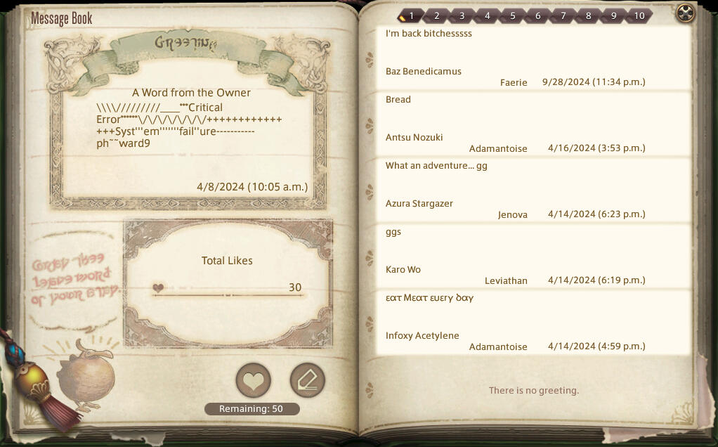 Old ripped notes near the entrance, scribbling on it mentions “░▓▒▓▒ wandering the ░▓▒▓▒.” Can't seem to tell what it fully says.